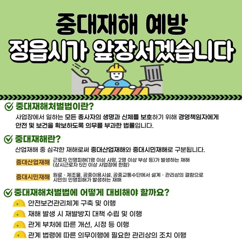 이학수 시장은 "중대재해는 사후 수습보다 사전 예방이 최선"이라며 "시민 한 분 한 분의 생명과 안전을 지키는 것이 시정의 가장 중요한 책무"라고 강조했다. 이어 "앞으로도 철저하고 체계적인 안전관리로 모두가 안심할 수 있는 정읍을 만들겠다"고 말했다.